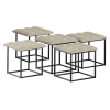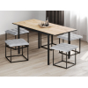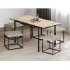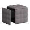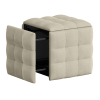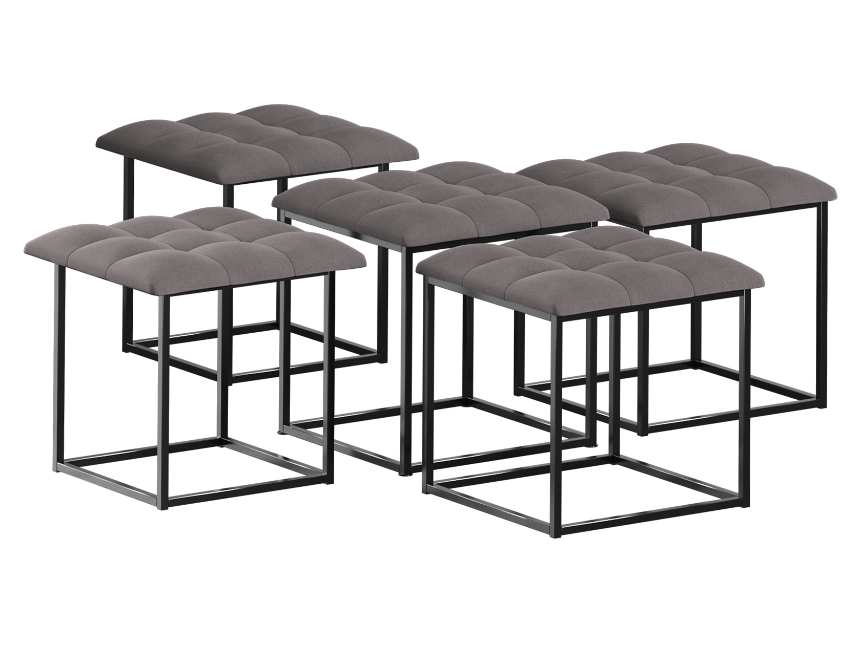 В сложенном виде модель представляет собой компактный пуф в виде объемного куба. На него можно присесть в прихожей, гостиной или на кухне, а также использовать как банкетку для домашней одежды возле кровати. Раскладной механизм превращает конструкцию в пять отдельных табуретов с мягкой обивкой, которые разместят целую компанию.